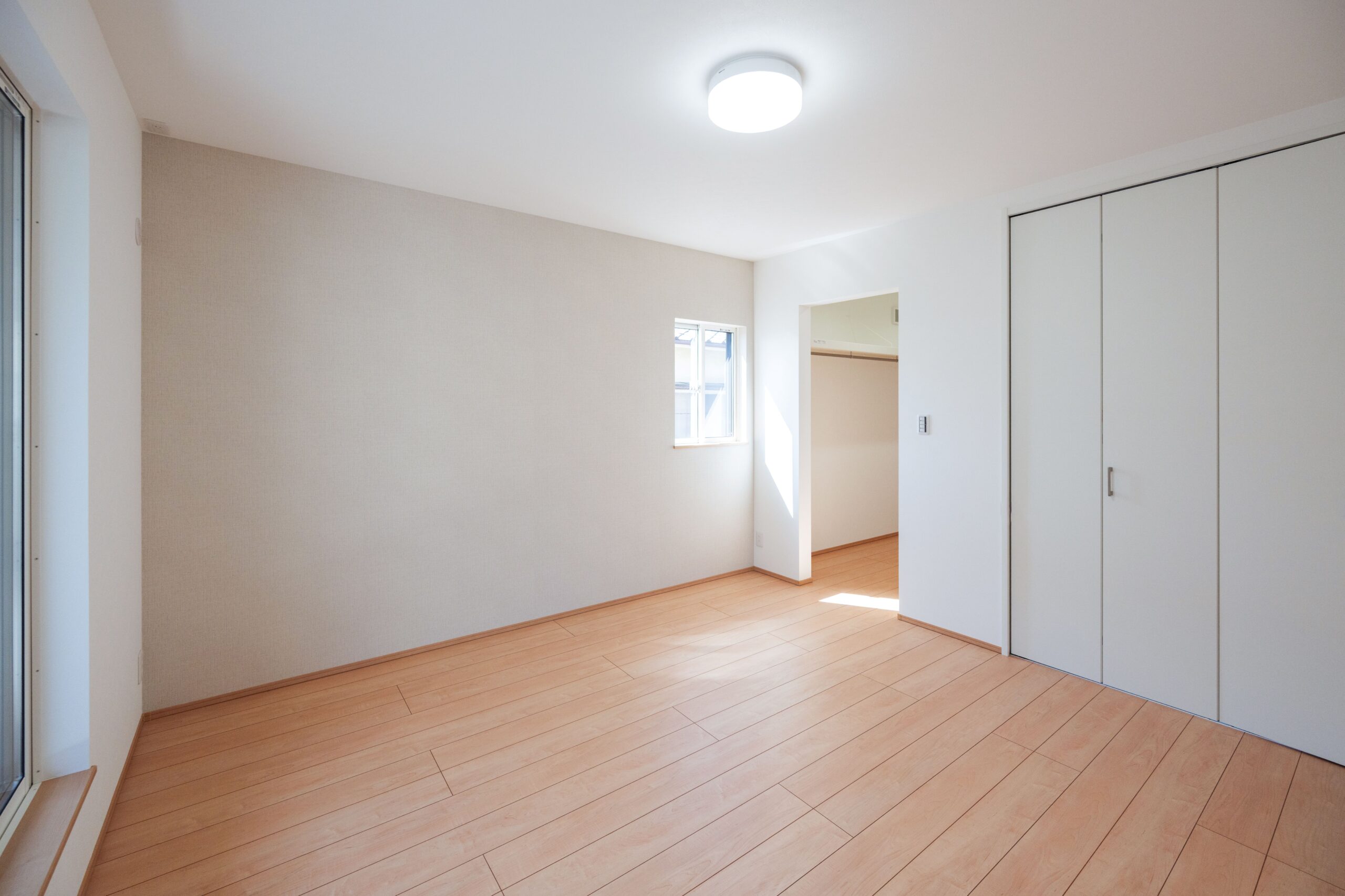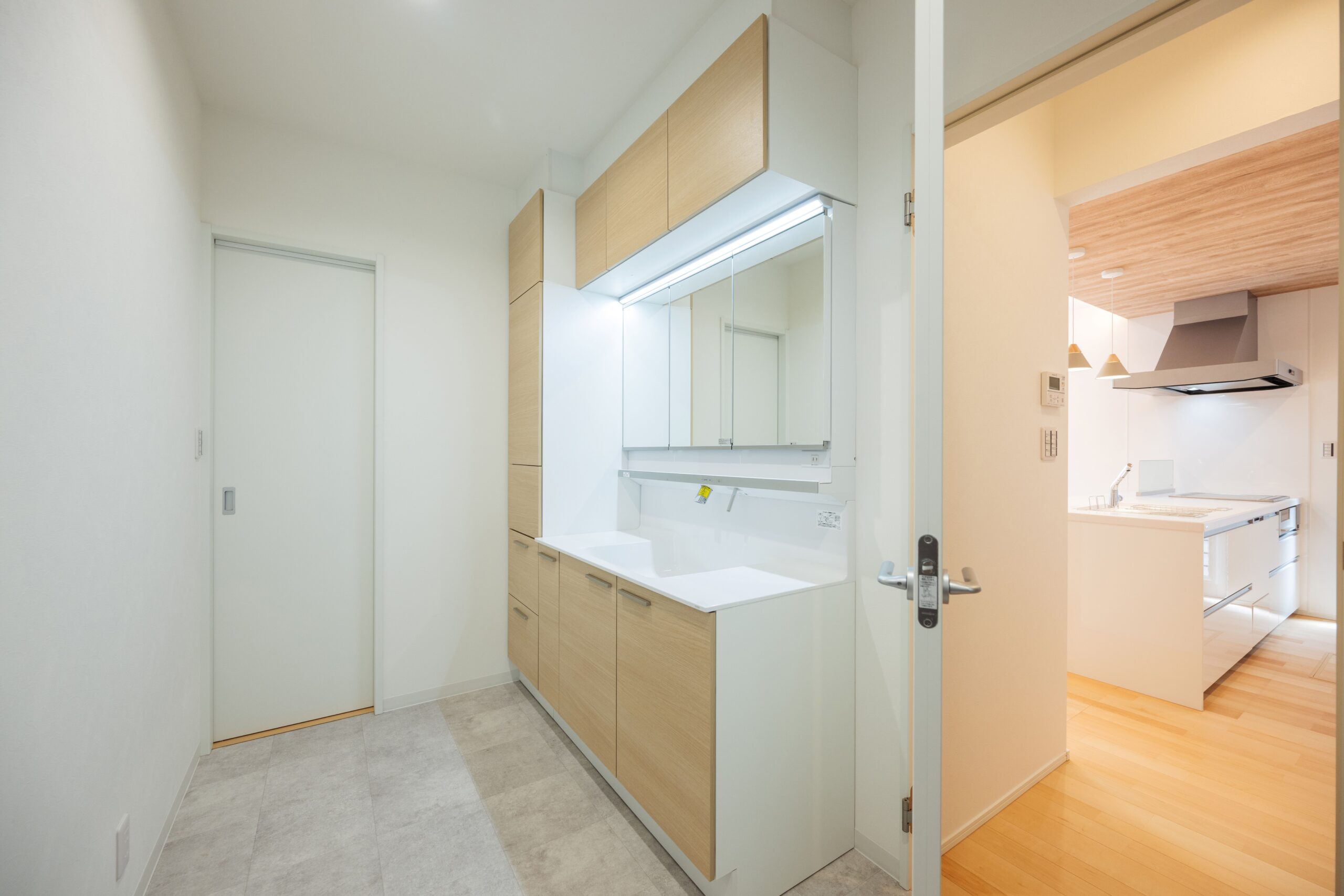 洗面は朝の支度をゆったりできるよう4帖と