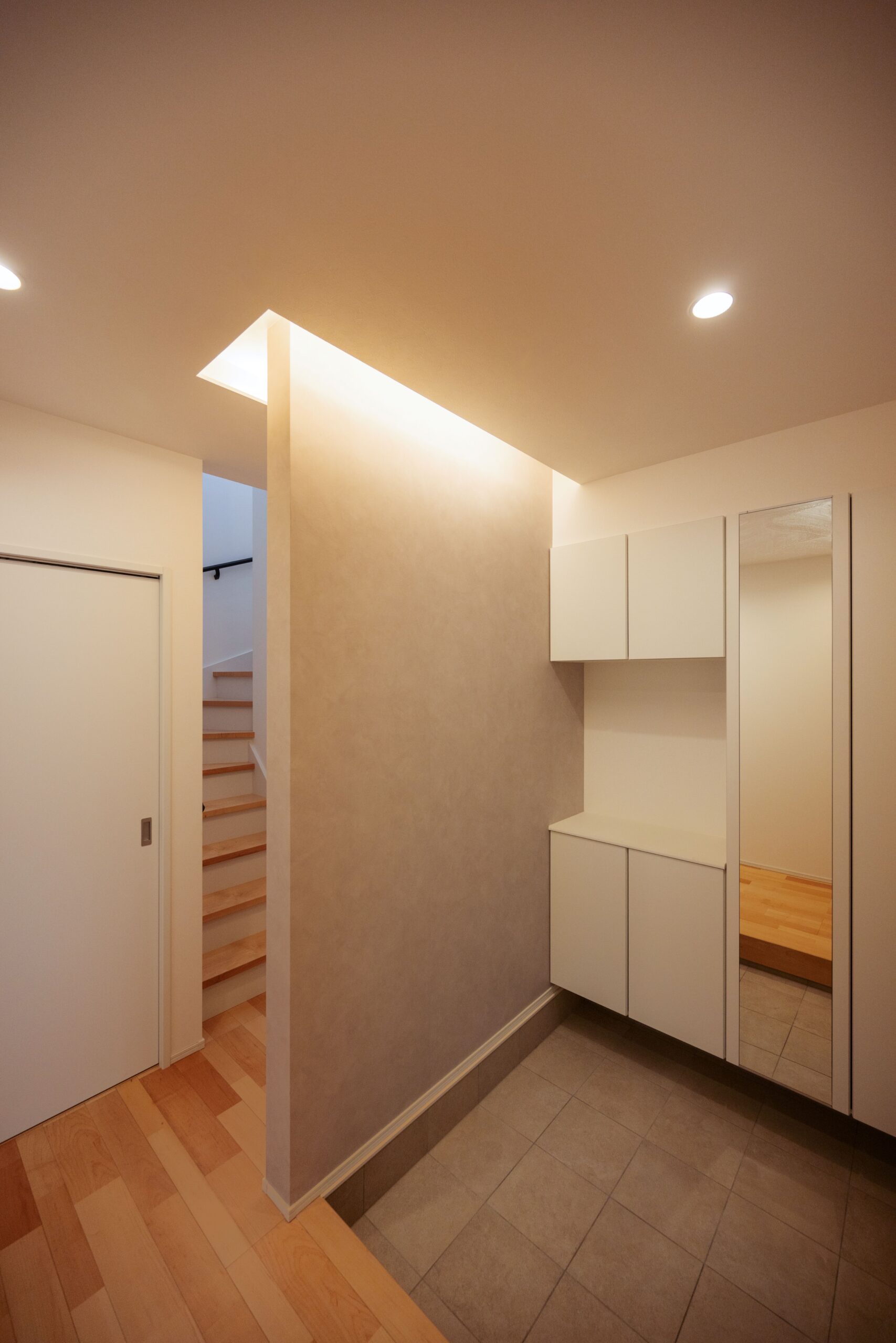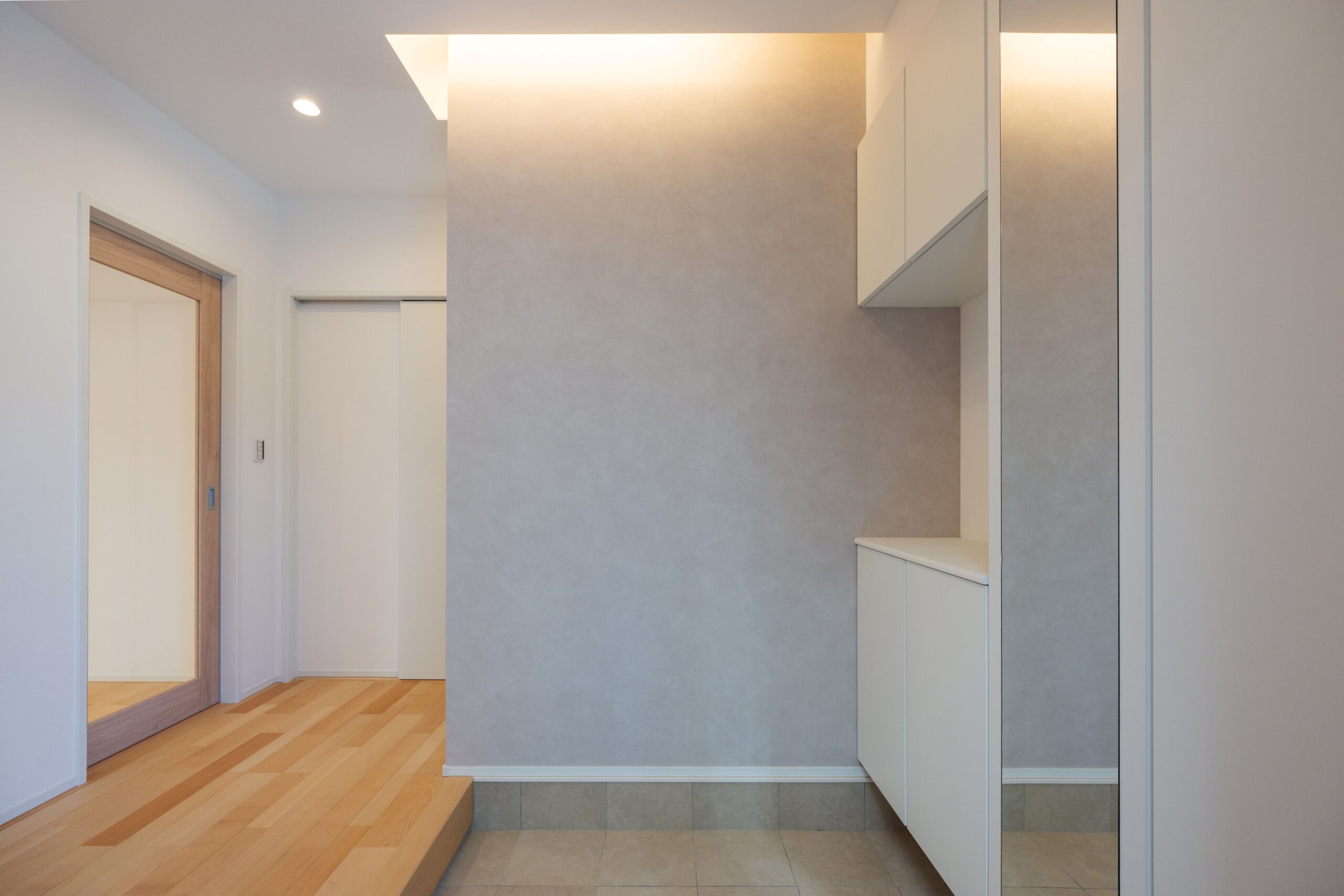 間接照明が空間を彩る玄関。