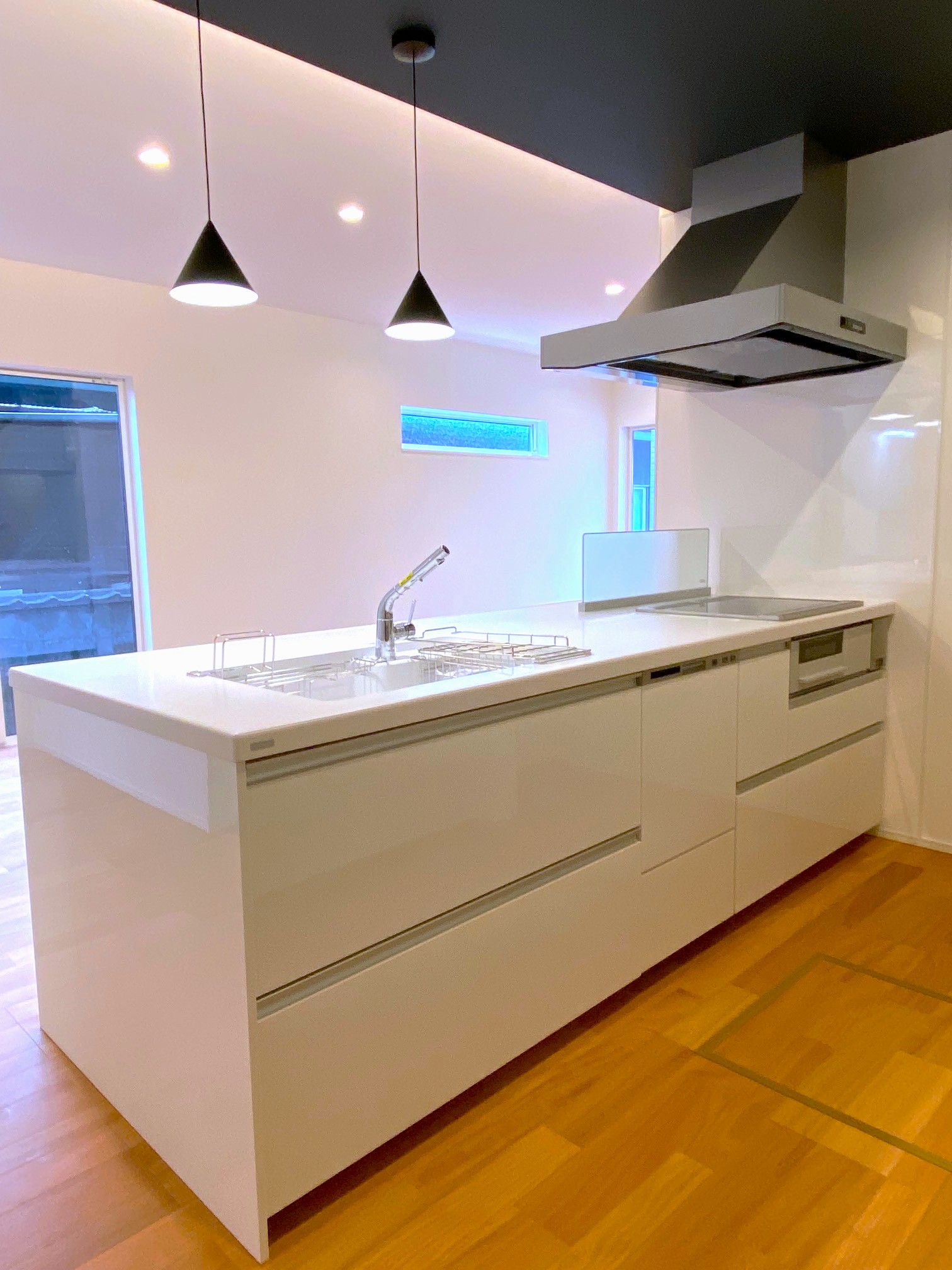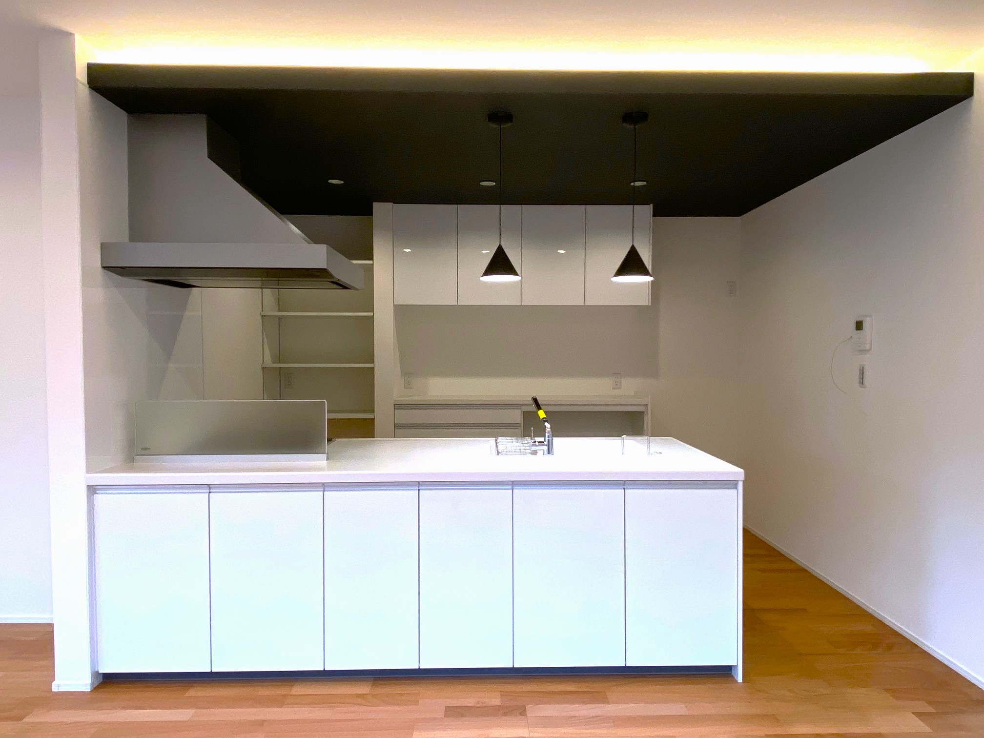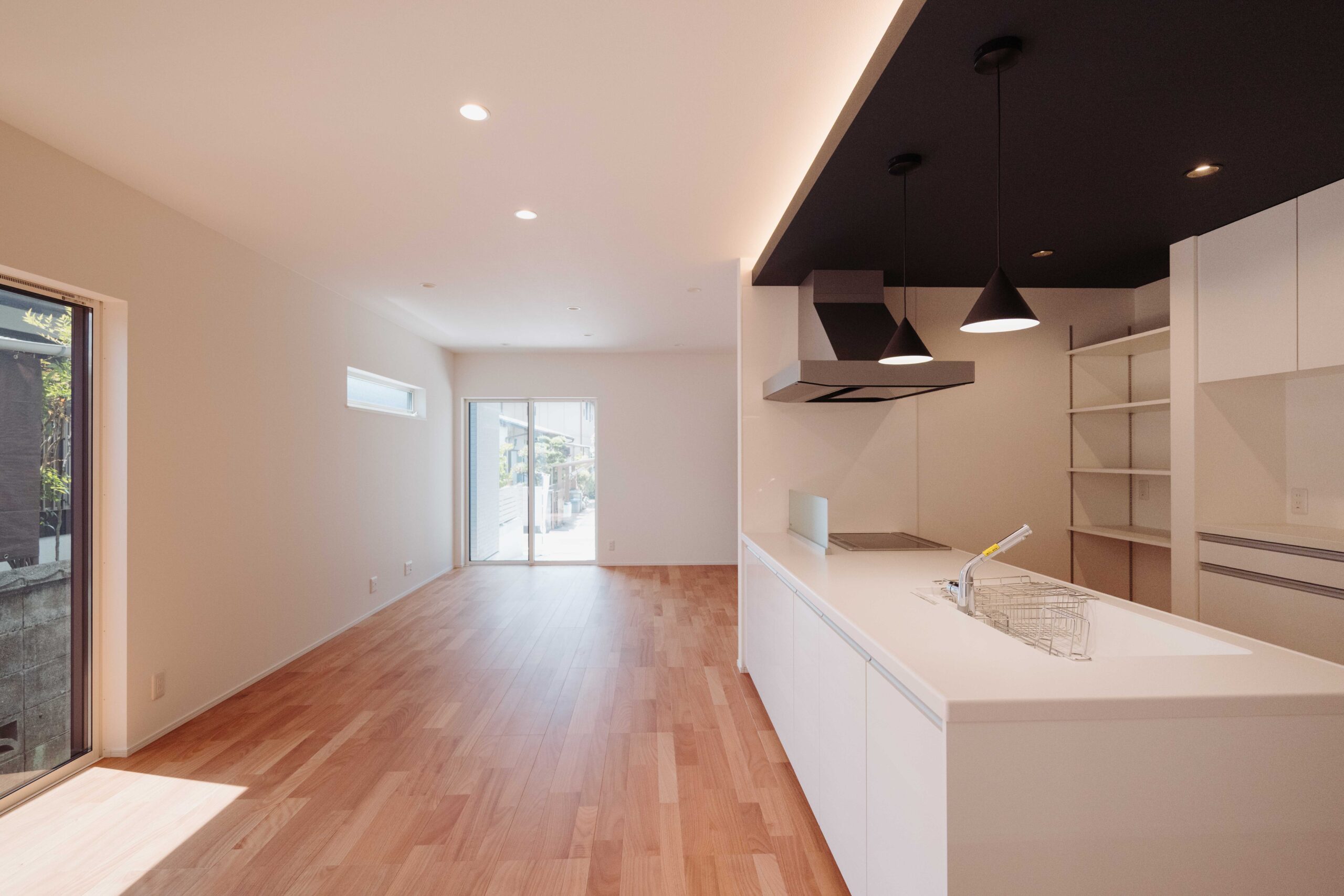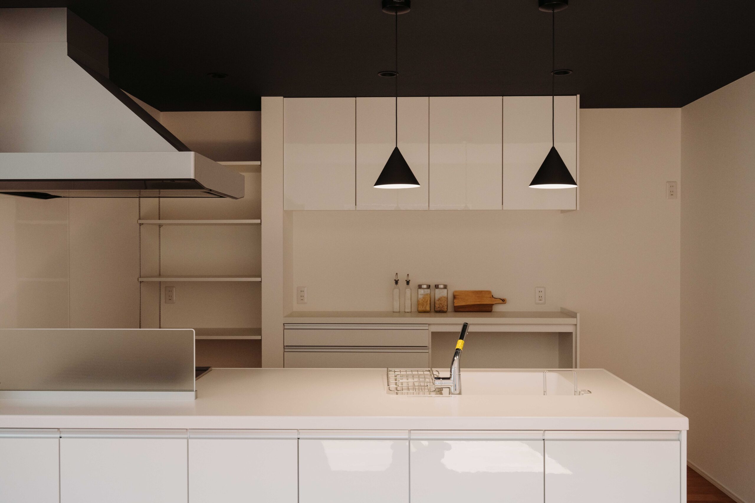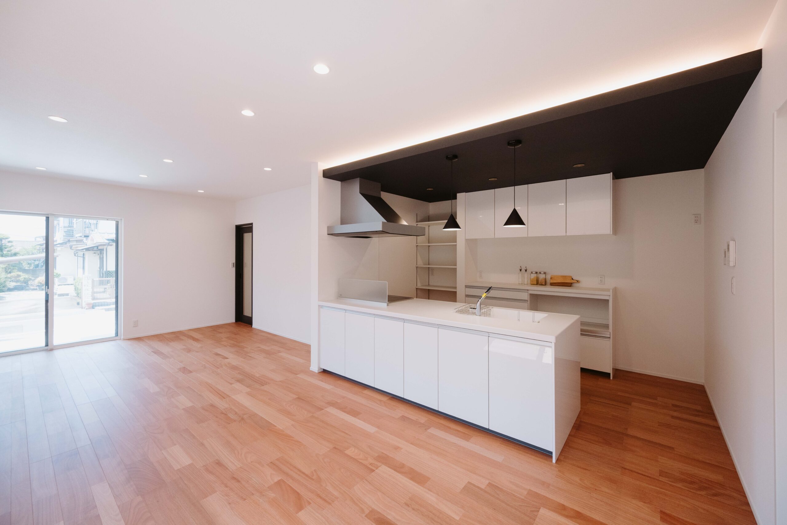建具にはブラックを合わせ空間を引き締めました。