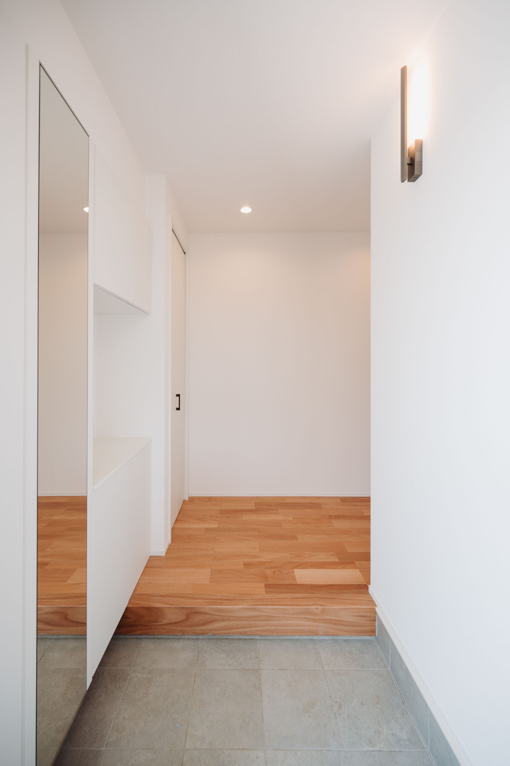 1Fは淡い赤褐色が特徴の「オクメ」を床材に採用。