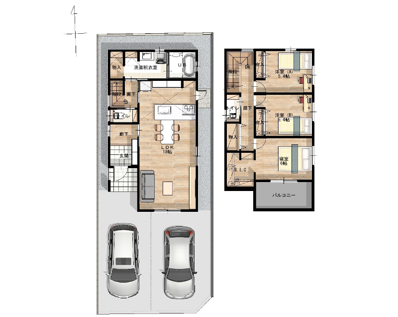LDKゆったり18帖とサニタリールームも3帖確保。